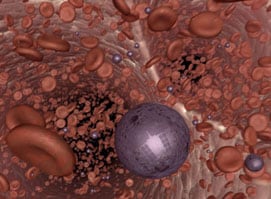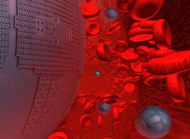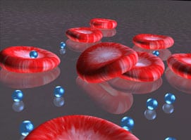TheĀ respirocyteĀ is a bloodborne 1-micron-diameter spherical nanomedical device designed byĀ Robert A. Freitas Jr.. The device acts as an artificial mechanical red blood cell It is designed as a diamondoid 1000-atmosphereĀ pressure vesselĀ with active pumping powered byĀ endogenous serum glucose, and can deliver 236 times more oxygen to the tissues per unit volume than natural red cells while simultaneously managing carbonic acidity. An individualĀ respirocyteĀ consists of 18 billion precisely arranged structural atoms plus 9 billion temporarily resident molecules when fully loaded. An onboardĀ nanocomputerĀ and numerousĀ chemicalĀ andĀ pressure sensorsĀ allow the device to exhibit behaviors of modest complexity, remotely reprogrammable by the physician via externally appliedĀ acoustic signals.