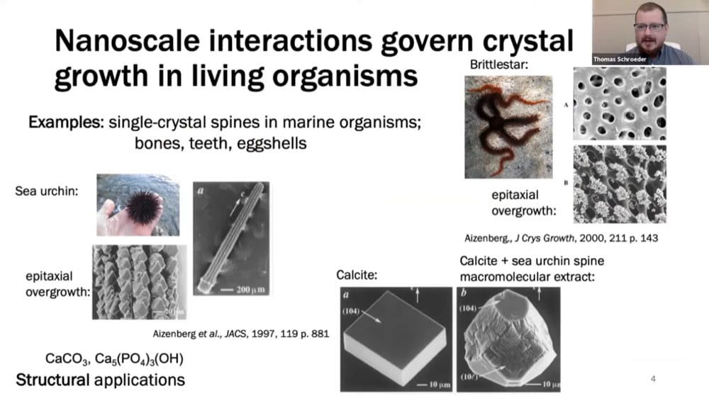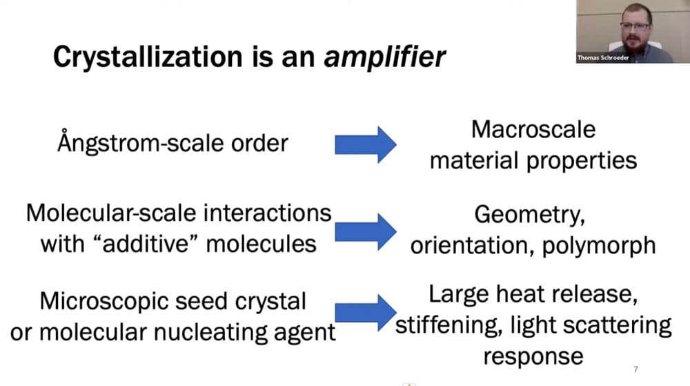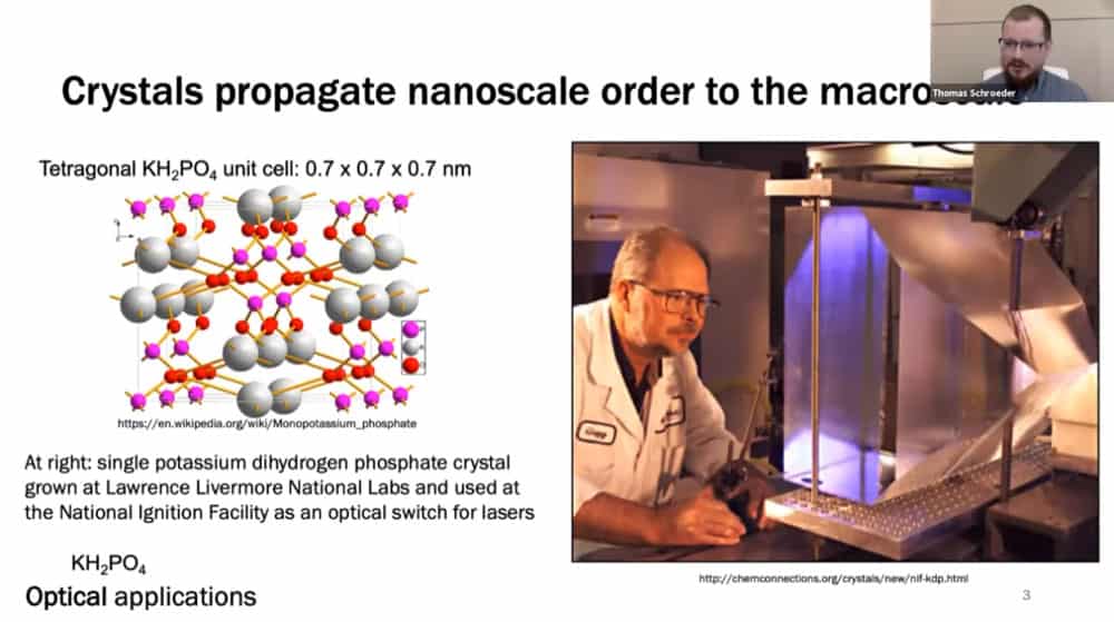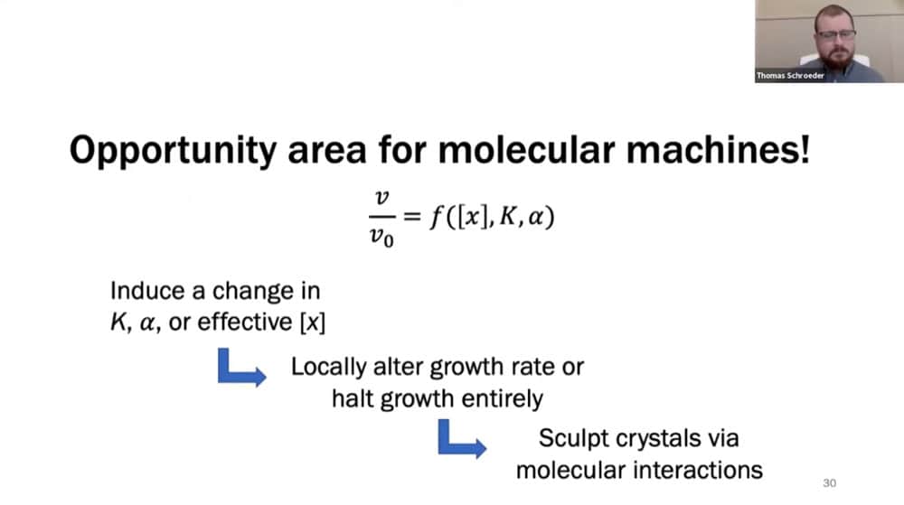An often repeated question in the nanotechnology field is how to extract useful macroscopic work from nanomachines. Tom believes that controlling the growth of crystals is the answer. Crystals propagate their nanoscale patterning up through many orders of magnitude, and nature uses biological nanotechnology to control crystal growth.