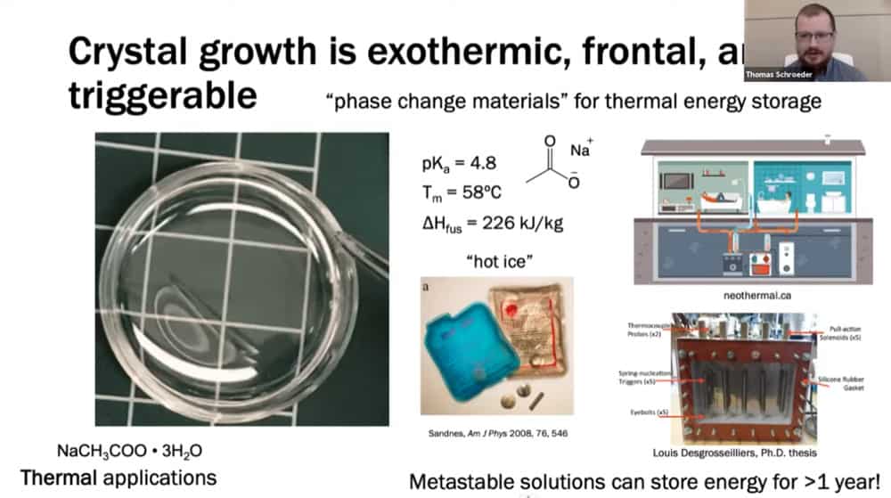 Crystalline structures of starfish or sea urchins are modulated by nanoscale interactions. One could imagine building similarly high detail structures by stimulating crystal growth in the correct pattern. Stopping crystal growth can be beneficial too – ice crystal formation is halted via antifreeze agents at a molecular level. Related to this is the already available ‘hot ice’ formulation, in which a chain reaction of crystallization releases heat in an exothermic reaction.