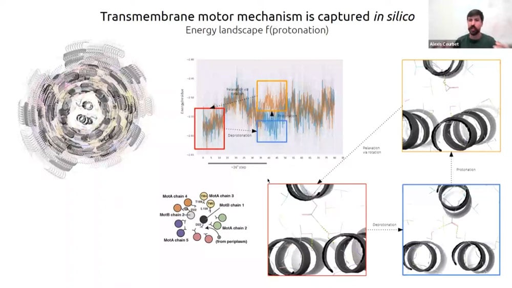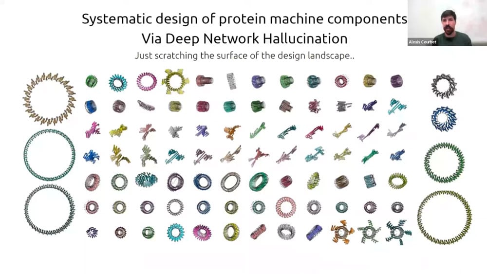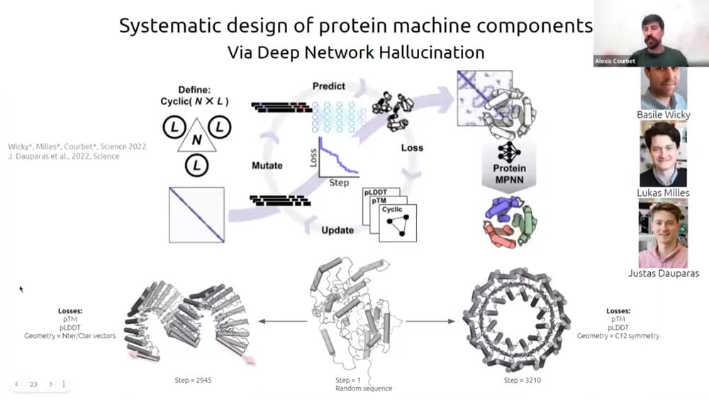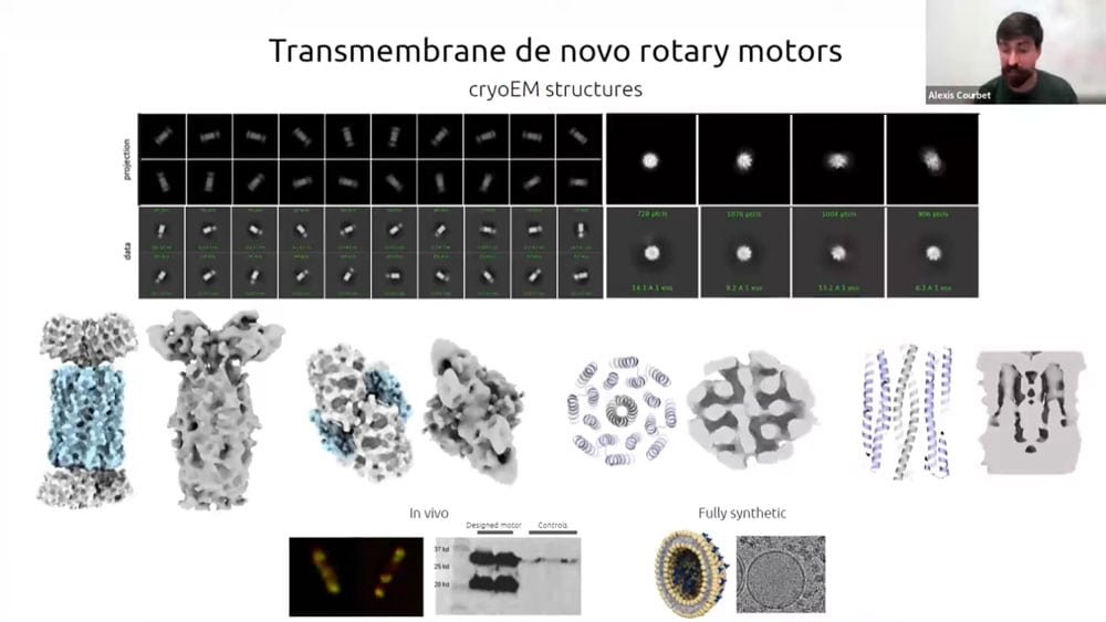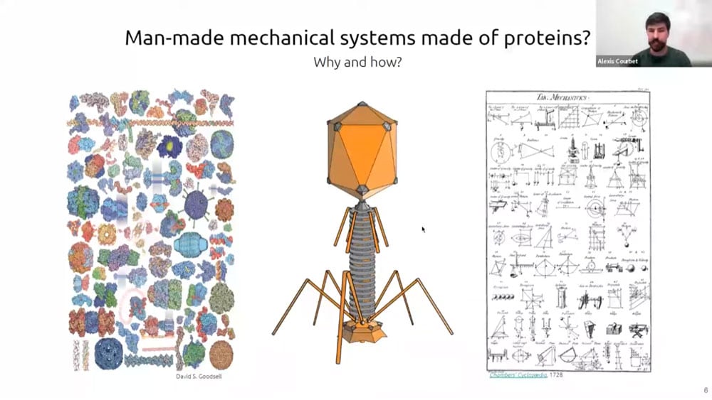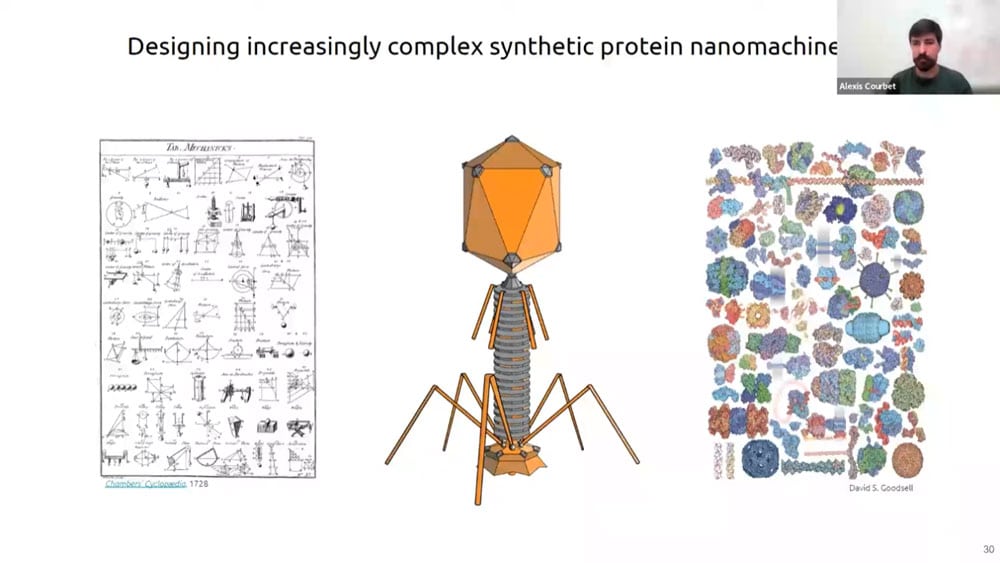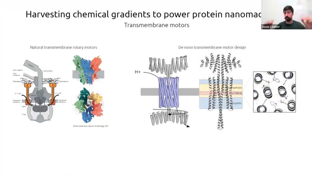 There has recently been a surge of progress with computational protein folding. Alexis is working on designing atomically precise machines using proteins as structural and mechanical elements. One of the first designs is an axel and rotor assembly. He started by designing the components separately, then computing the interface between components. He then simulated the motion and degrees of freedom to calculate whether the machine would perform the intended function.