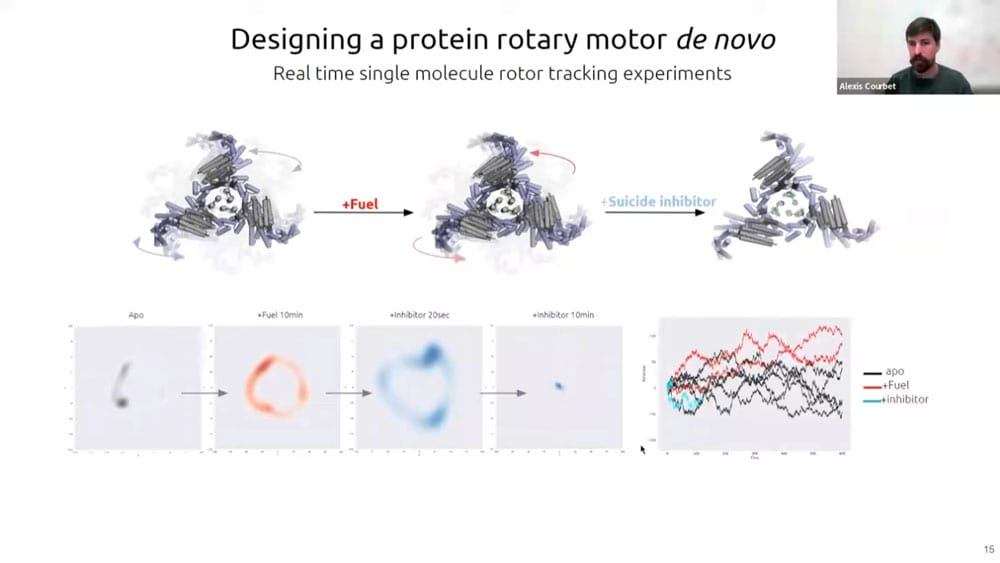 A small library of computationally designed machines have been created so far using this method. The designs so far have mostly been rotors – designing motors that can generate torque is the next challenge. He wants to use Brownian motion to create a sort of ratchet, a rotor that preferentially diffuses in one direction via catalysis. Mapping out energy landscapes, computing surface topology, and discovering catalytic elements are just a few parts of the interesting process of protein design.