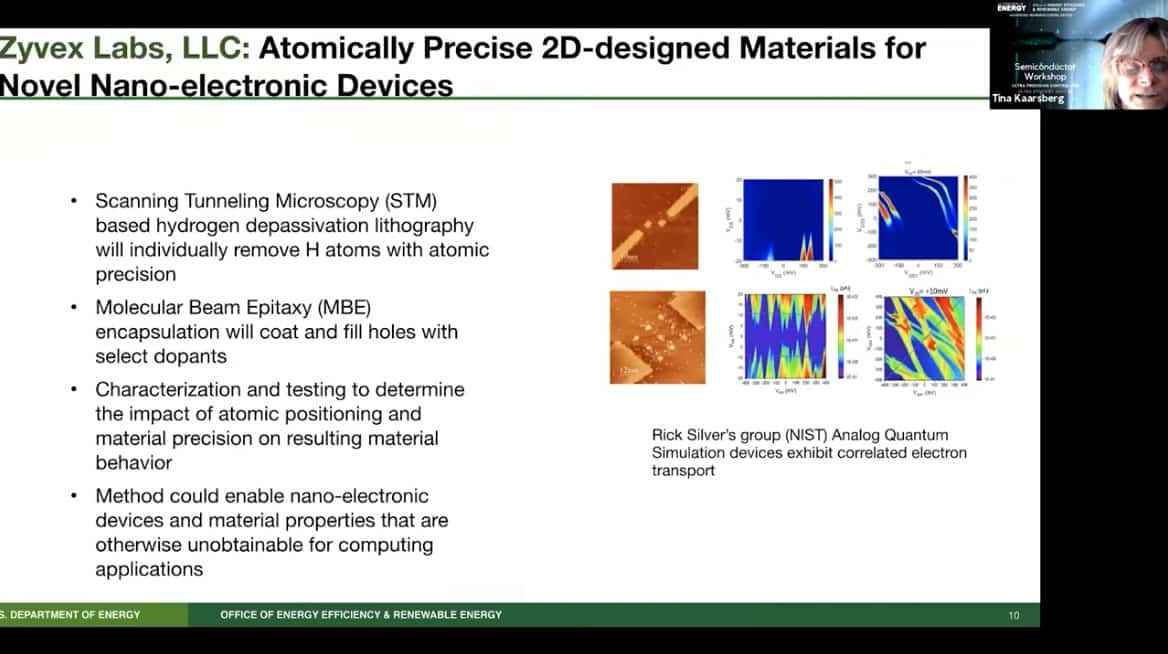 - One of the Zyvex projects involved using a scanning tunneling microscope to create atomically precise 2d materials. Individual hydrogen atoms were pulled out of a surface and substituted with others. This project had applications for quantum computing and nanoelectronic devices.