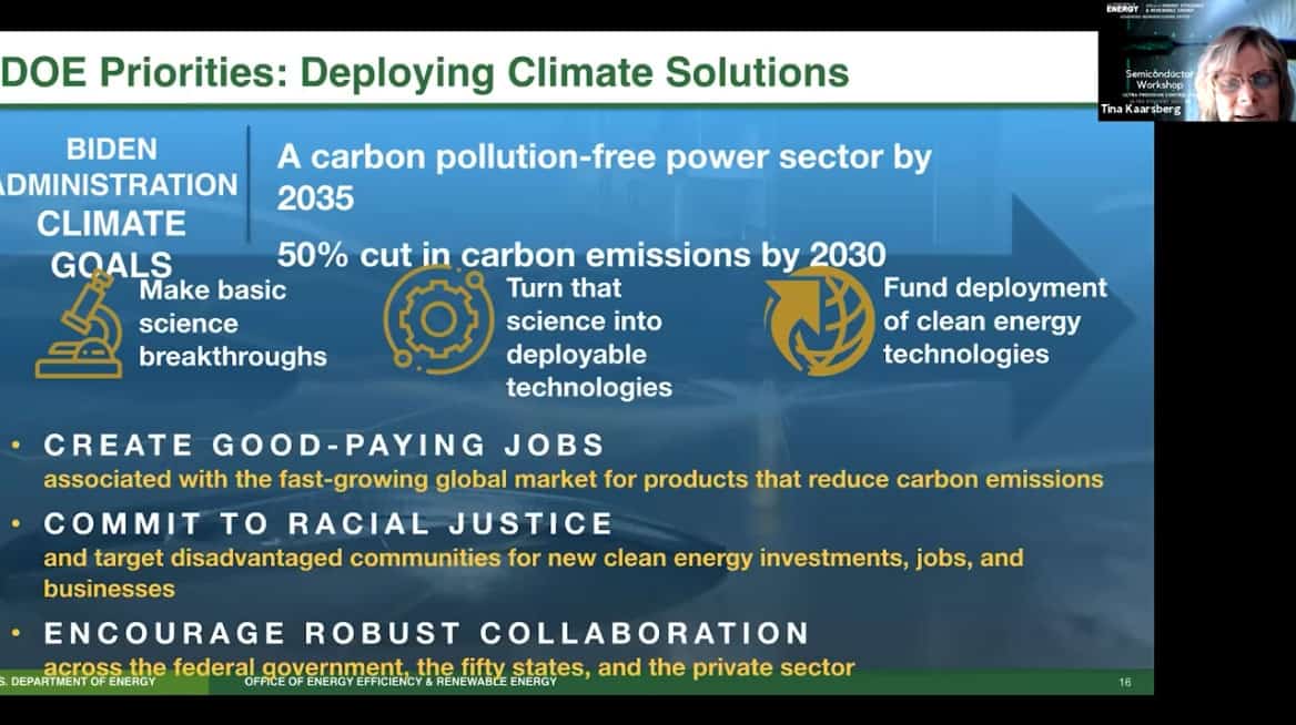 - The mission is to reach a zero carbon emission grid by 2035, and to reduce carbon emissions by 50% by 2030. There is also a need to bring semiconductor manufacturing back to the US.