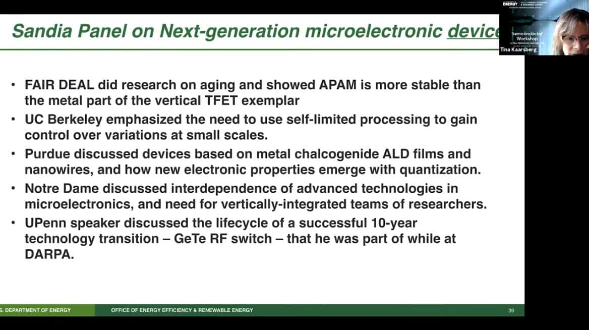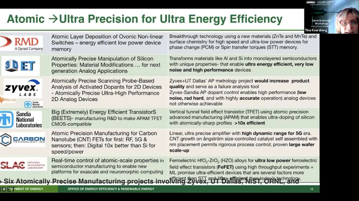 - We put out an SBIR asking for atomic precision for energy efficiency. It turns out the microelectronics portfolio that we got underpins the promising device types of the IEEE international roadmap on devices and systems.