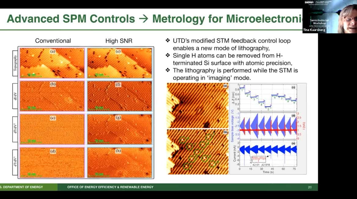- For STM manufacturing, ultradoping leads to interesting phenomena such as abrupt dopant profile – important for the tunnel field transistor. The tunnel field transistor is projected to be about 10x more efficient, which is the type of advance we need to get to these ambitious goals. Area select deposition is being investigated (guided self assembly) for scale-up of ultradoped devices. They’ve done some testing and it looks like ASD can be used to manufacture these vertical tunnel field transistors.