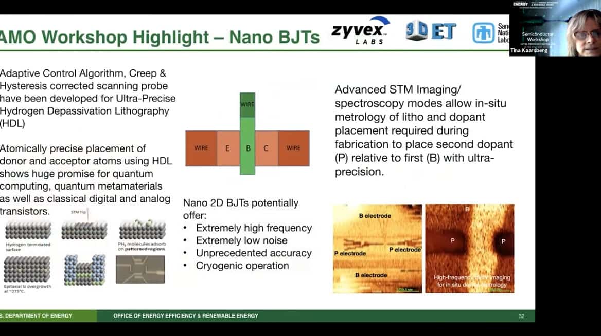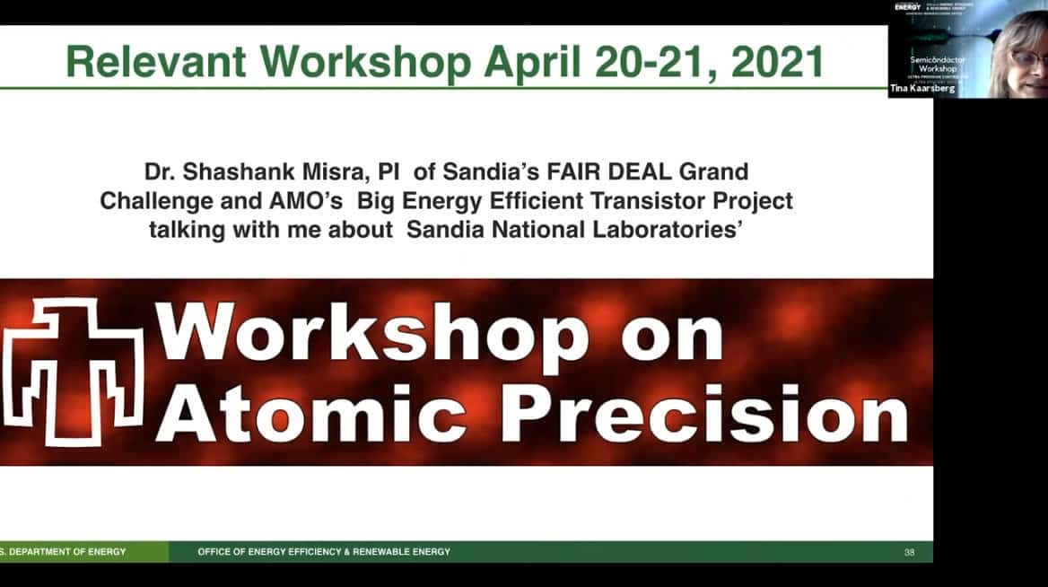 - There was a relevant workshop on atomic precision on April 20-21, 2021. From my notes on the workshop – one of the great results was showing atomically precise results from a TFET showing APAM is more stable than the metal part. The workshop talked about various forms of fabrication. Also the difficulty of characterization.