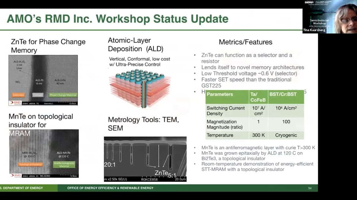 - RMD has an atomic-layer deposition project which uses interesting chemistry both for phase change memories and spin transfer torque device memory.