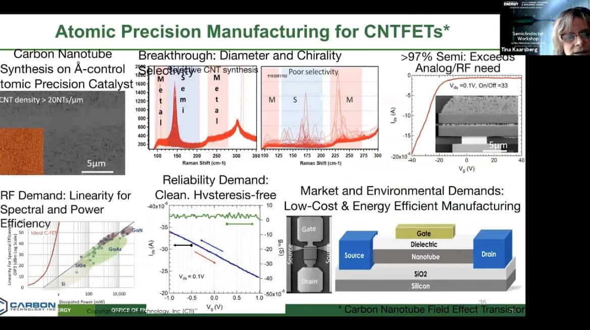 - A company called Carbon Technology is doing precision manufacturing of carbon nanotube field effect transistors, purifying carbon nanotubes to 95% metallic.