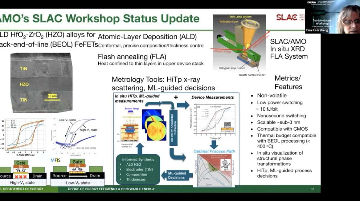 - SLAC project uses atomic layer deposition and flash annealing to work on ferroelectric memory. The project is also using machine learning to figure out how to design and optimize the process.
