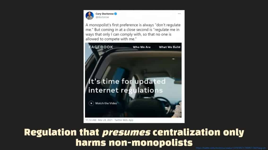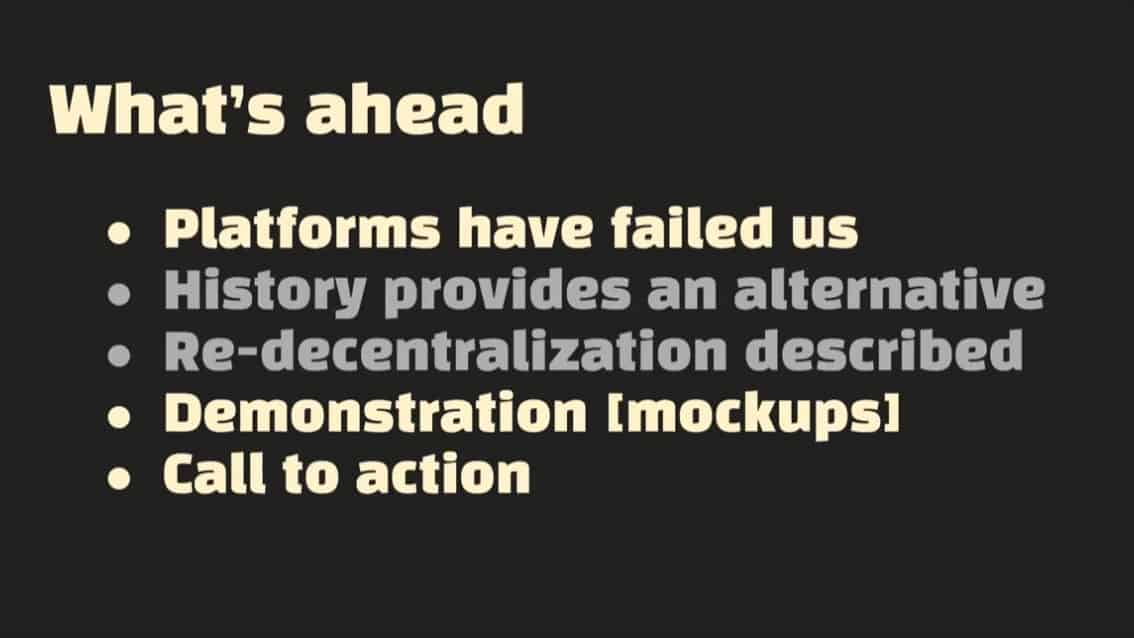 - Historical examples exist of decentralization.Ā Itās possible to remove gatekeepers and allow consent, creating a future beyond simply ādistributed twitterā.