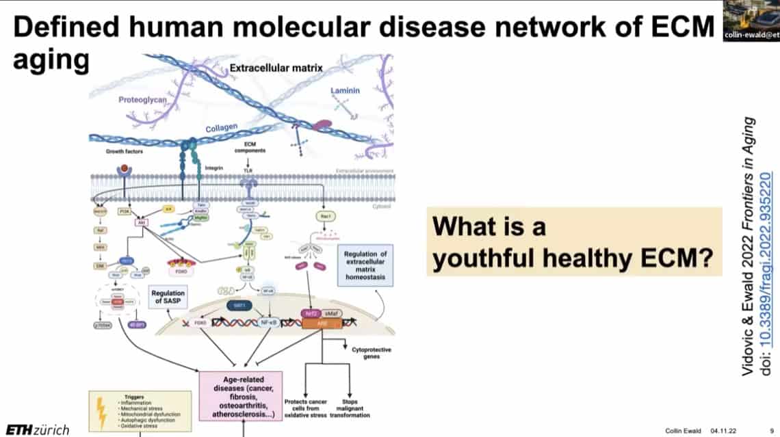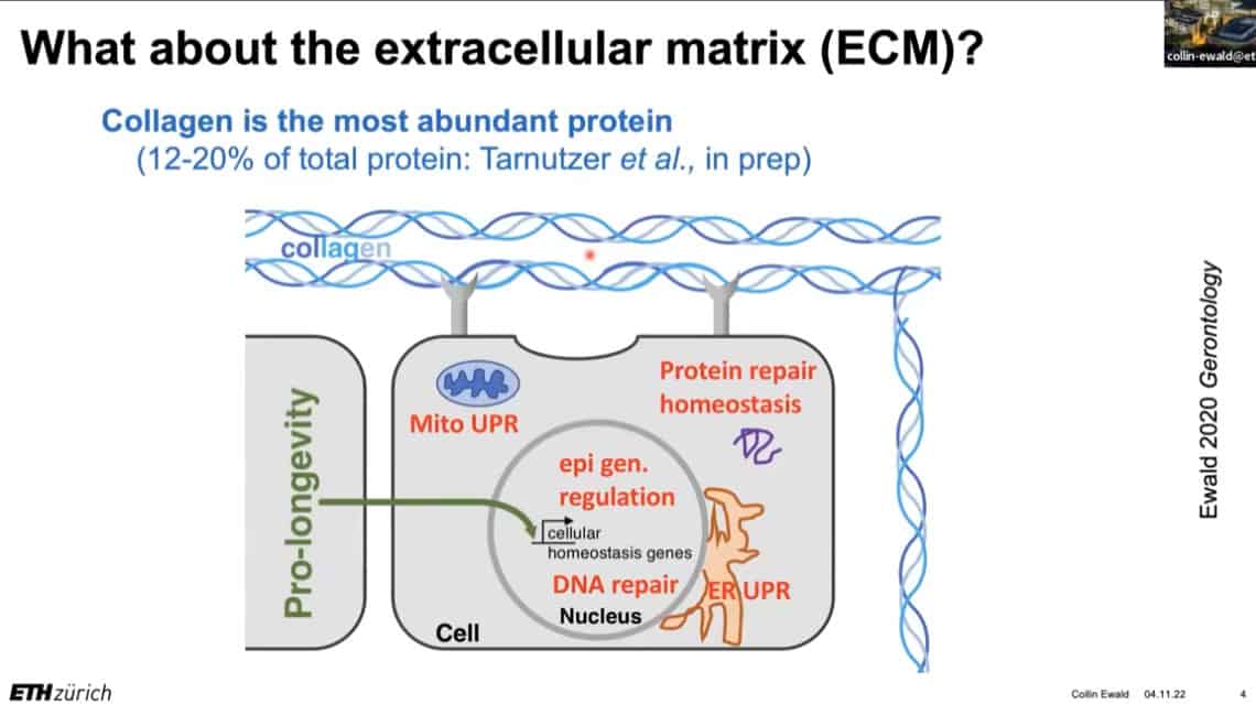 The extracellular matrix is incredibly complex and vital to understanding aging. Collagen, a key component of the ECM, is the most abundant protein in the human body. How is the extracellular matrix regulated and maintained, and what types of damage are inflicted upon it?