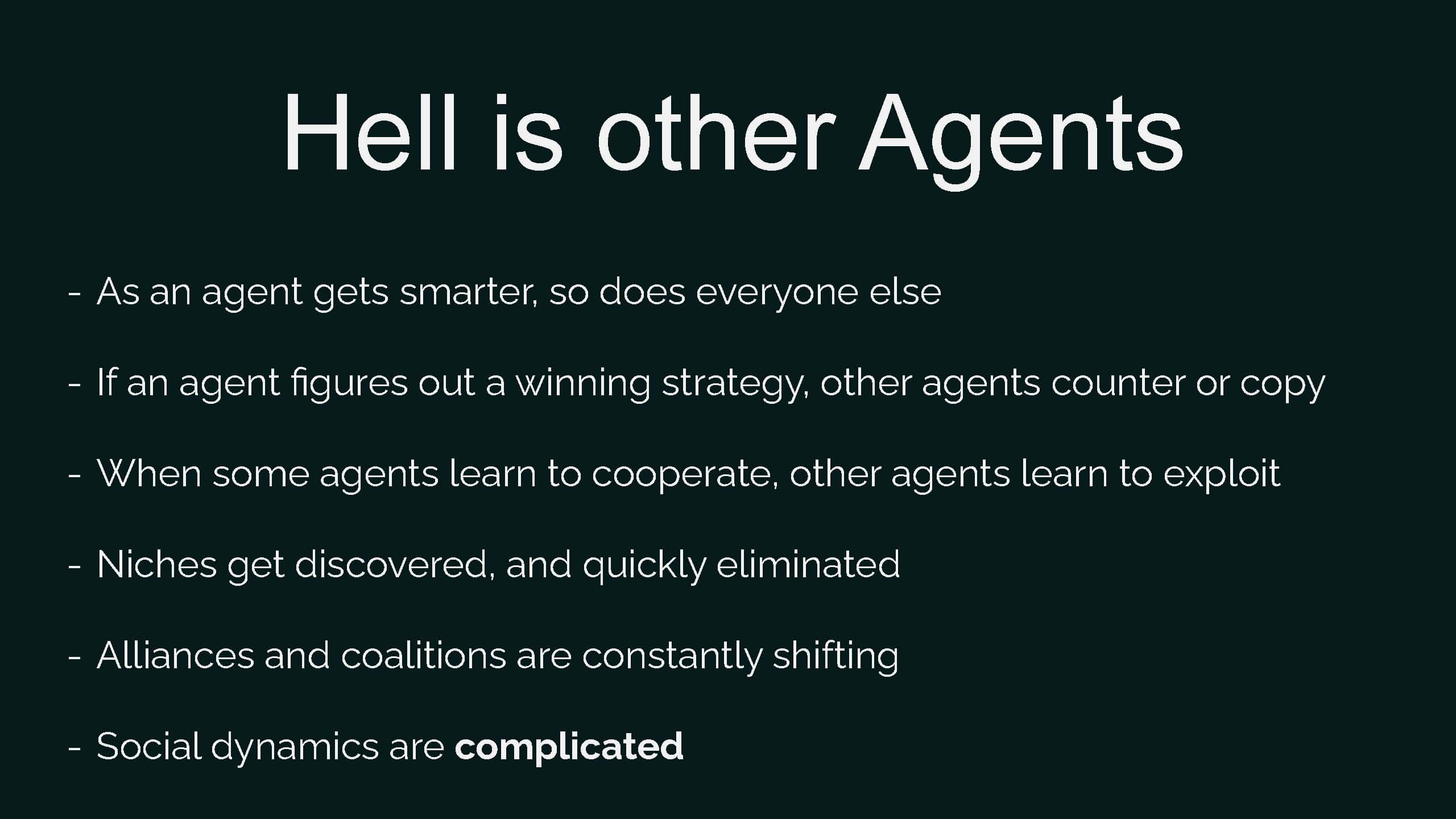 A crucial challenge in my field is engineering environments that effectively balance complexity and adaptability. These should prompt agents not only to develop advanced cognitive skills but also to navigate and cooperate within intricate social dynamics. Such environments would be instrumental in driving progress toward more adaptive and intelligent AI systems.