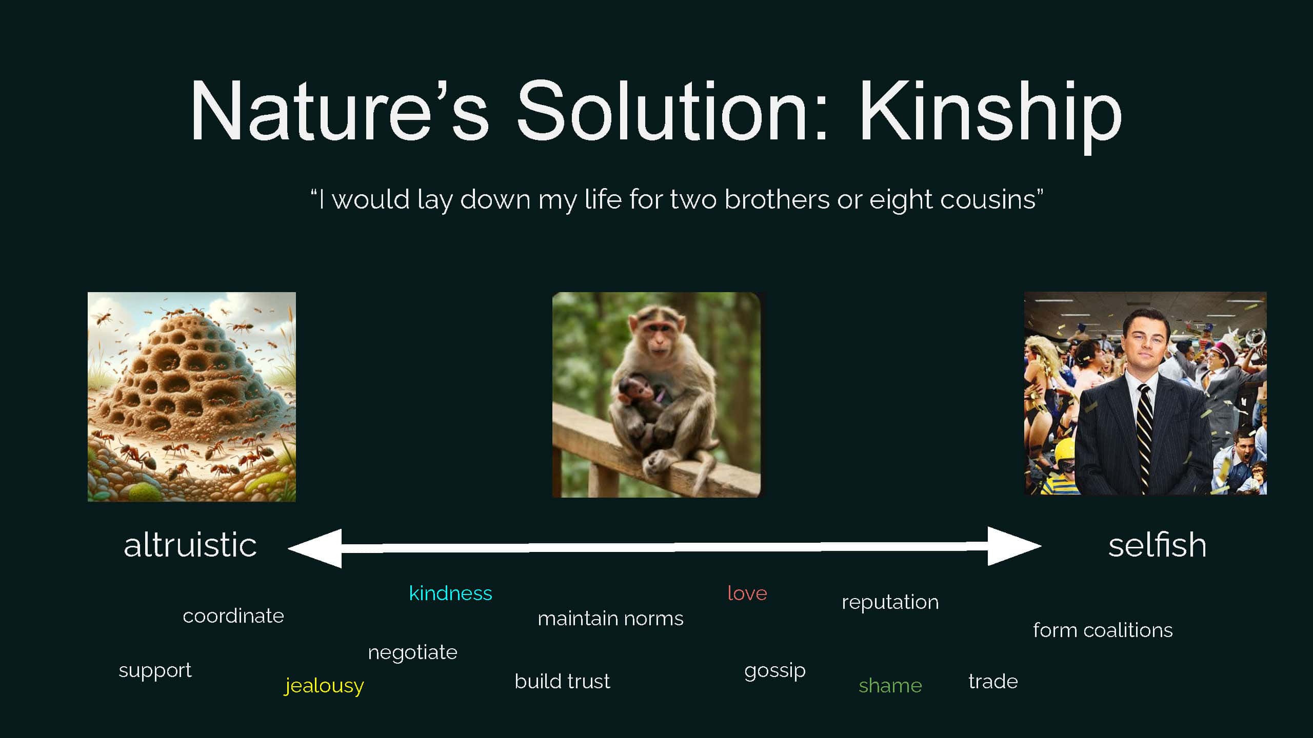 This talk presents an innovative approach in AI research aimed at the development of generally-intelligent, alignable agents. Inspired by kin-selection theory, we use reward sharing to create dynamic, socially complex environments. We believe that training agents in these environments may lead to both general intelligence and cooperative behaviors.