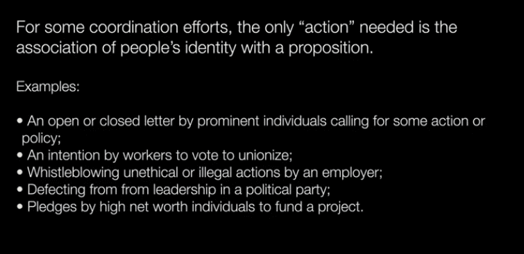 - Can we get a group of people moving to the same physical location? How do you verify people will actually do what they commit to?
