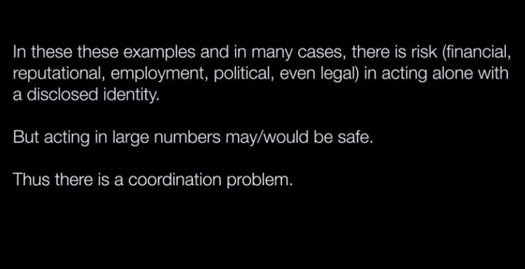 - Anthony: Yeah, agreed. My approach is to start with lower stakes contexts instead of government secrets and corruption. Then we can build trust in the system over time.