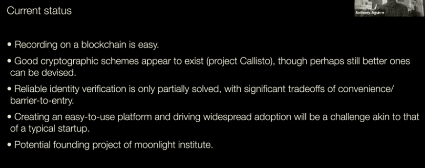 - Anthony: not really, we are putting the requirements and such on the blockchain to prove that they weren’t changed later.