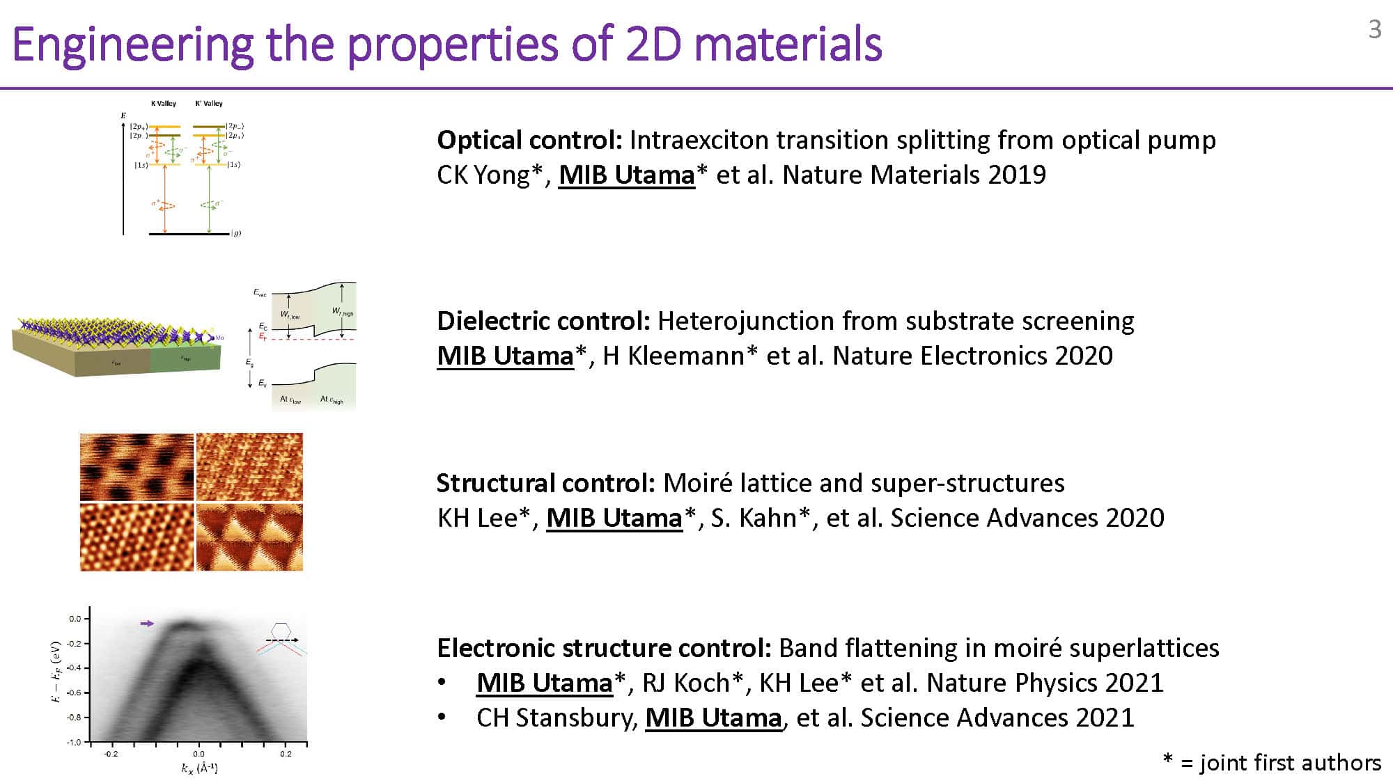 M. Iqbal Bakti Utama is a Foresight Fellow 2023 in molecular machines. He actively engages in research at the intersection of materials physics, materials chemistry, and nanotechnology. Currently, he holds a postdoctoral position at Northwestern University in the United States, where he is affiliated with the Center for Molecular Quantum Transduction, working under the guidance of Prof. Mark Hersam. Previously, he completed his PhD at the University of California, Berkeley, under the supervision of Prof. Feng Wang. Dr. Utama's research is centered around the development of innovative properties in low-dimensional nanomaterials. He employs various experimental techniques, including molecular functionalization, to finely tune these materials for applications in electronics, photonics, and quantum information sciences. His research encompasses a wide range of activities, including material synthesis, multi-modal characterizations, and device applications. Originally from Indonesia, Dr. Utama is deeply committed to mentoring students and actively contributing to the improvement of the educational pipeline in the fields of science and engineering.