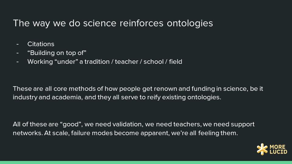 – Allowing research to build “understanding” under different ontologies, as long as this is justified by results