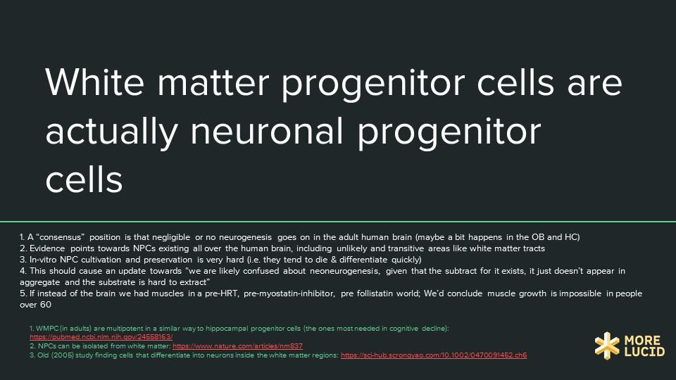 – Taking anencephalic clones ( / robot bodies) seriously and asking “how do we solve longevity” from the perspective of those issues being fixed, since they look like engineering issues, in a meaningful way “solved” problems given a 100-year horizon
