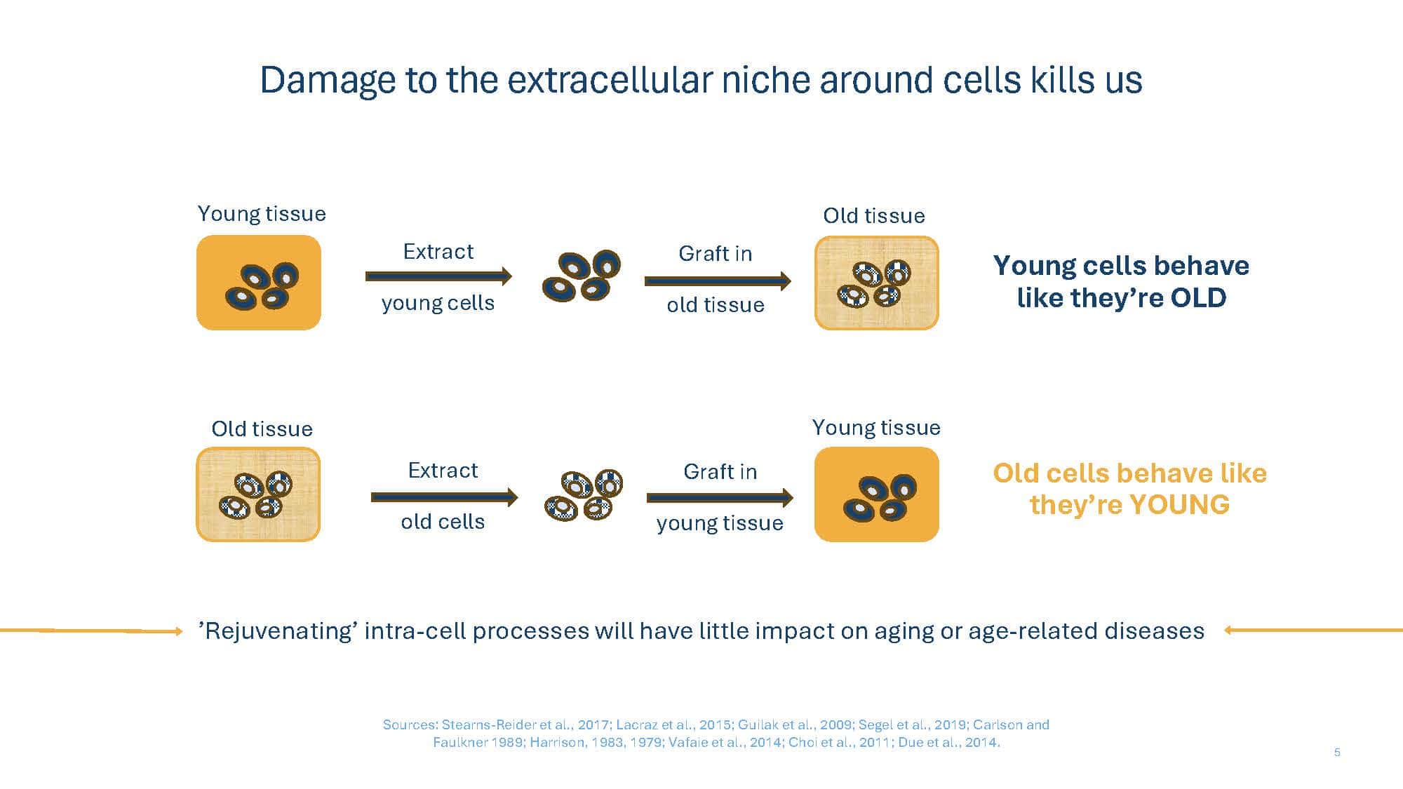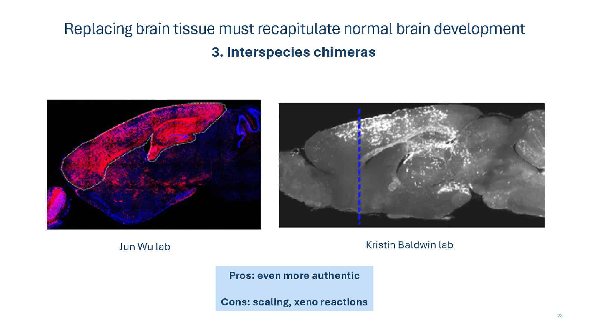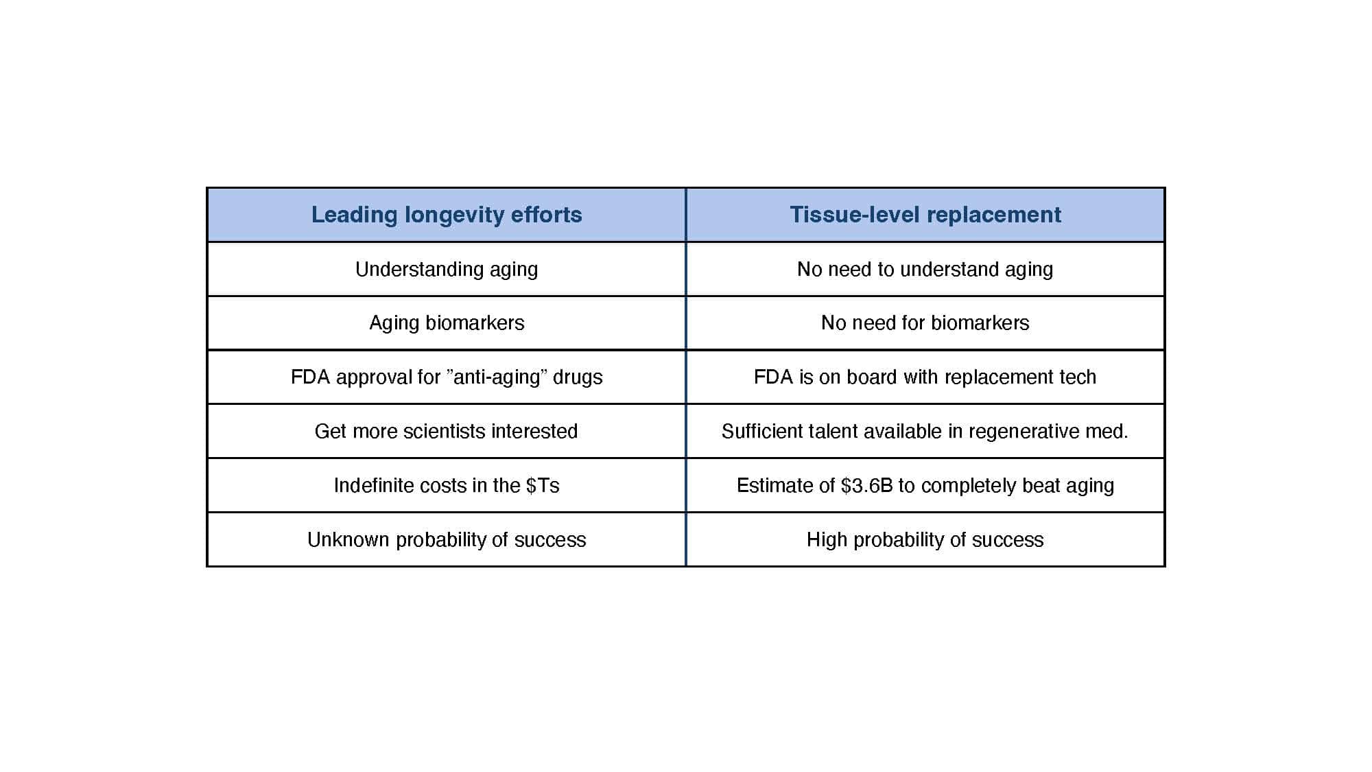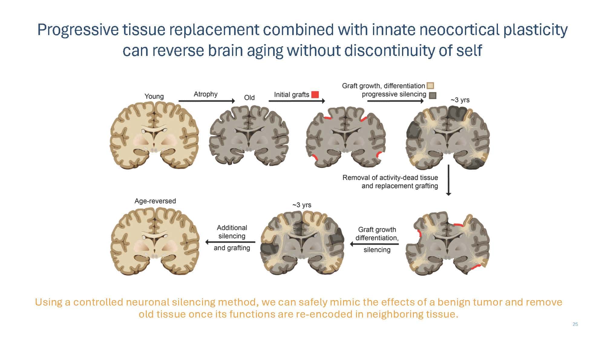 With the goal of spurring discussion, the talk will present arguments for why replacement strategies at the tissue level or greater overcome limitations of non-replacement strategies in beating aging. A broad overview of replacement approaches will then be provided to compare and contrast the pros and cons of each, with a special focus on the brain, which remains our greatest challenge.