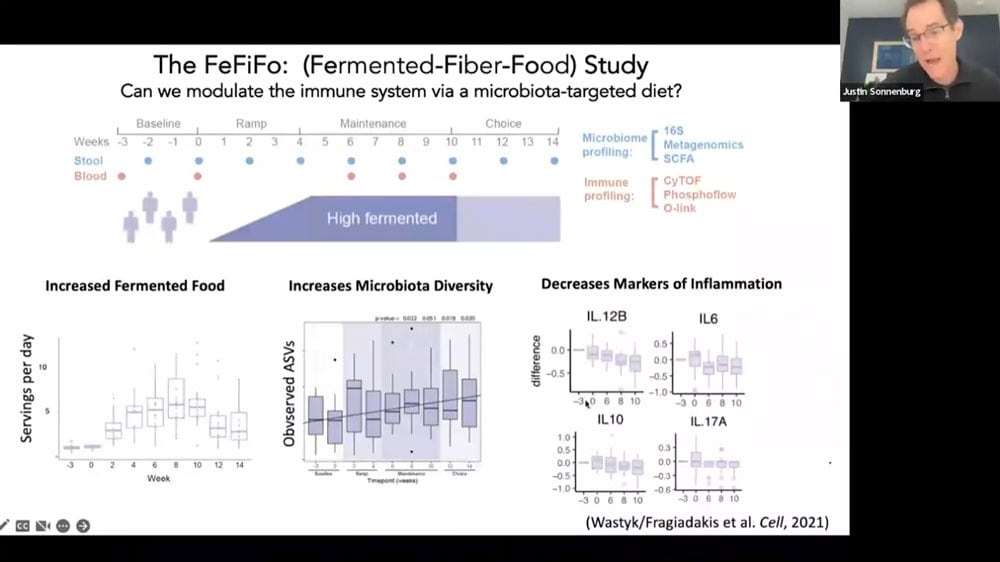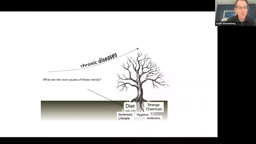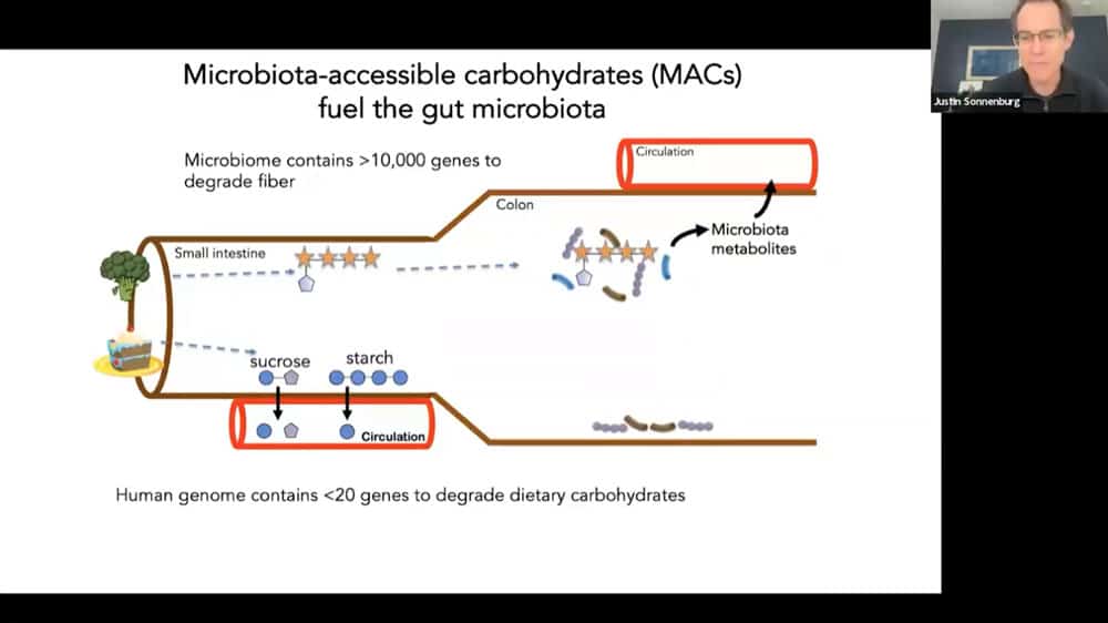 Diet is a key control mechanism for the gut microbiome. When we eat foods with simple sugars, they are broken down very quickly in our intestine compared to foods with lots of fiber. This negatively changes the microbial composition and starves microbes that live further down our intestinal tract. Those microbes begin eating the lining of our gut, which leads to infection and inflammation.