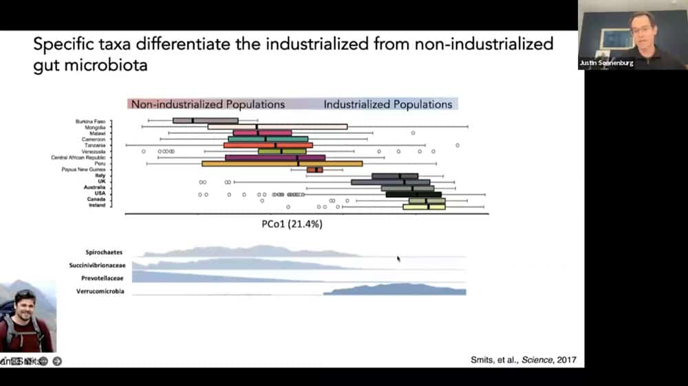 Justin is also investigating how the microbiome has shifted in the context of pre- and post-industrial societies. There appears to be a clear pattern of microbiome shift as humans transition from foraging to agriculture and then to industrial standards of living. The specifics of what this means for our health and how we should interpret it is still not clear.