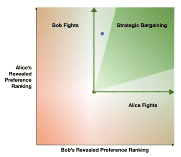 - Alice and Bob can reason about each others preference ranking and hold out for good deals.