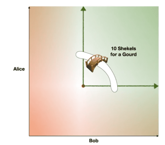 - Technologies like escrow, reputation, contracts and the rule of law, Alice and Bob can arrange to cross the bridge together into the world in which they’re both better off.