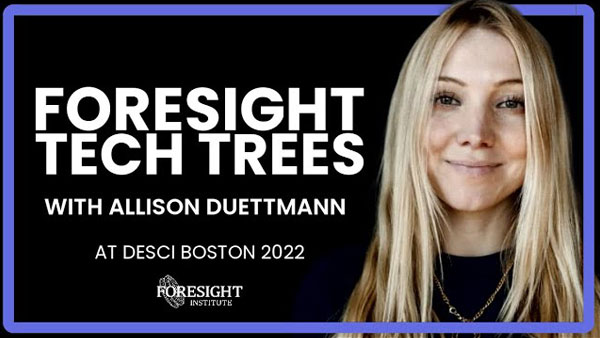Presenter Allison Duettmann, Foresight Institute Allison Duettmann is the president and CEO of Foresight Institute. She directs the Intelligent Cooperation, Molecular Machines, Biotech & Health Extension, Neurotech, and Space Groups, Fellowships, Prizes, and Tech Trees. She shares Foresight’s work with the public, for instance at the Wall Street Journal, SXSW, O’Reilly AI, WEF, The Partnership… Continue reading DeSci Boston 2022 | Foresight Tech Trees